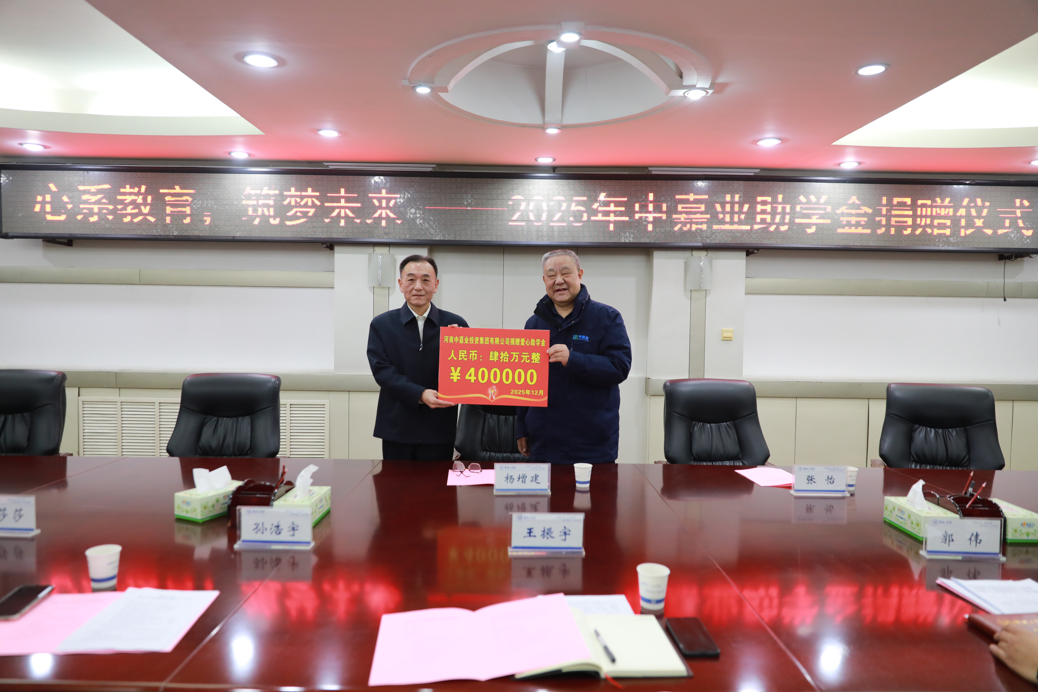 12月17日,永利集团2025年中嘉业助学金捐赠仪式在行政楼二楼会议室举行。河南中嘉业投资集团有限公司副总经理杨增建、企业管理部部长张怡,副校长王振宇出席,部分学院党委副书记代表、学生工作处相关人员、全体资助专干和受助学生参加。
